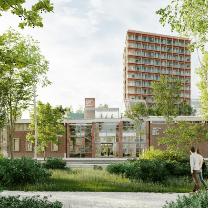 Réhabilitation des Station Nord et Sud de la Gare des Mines, construction d’une tour Crous de résidence étudiante et d’un hôtel d’activités.