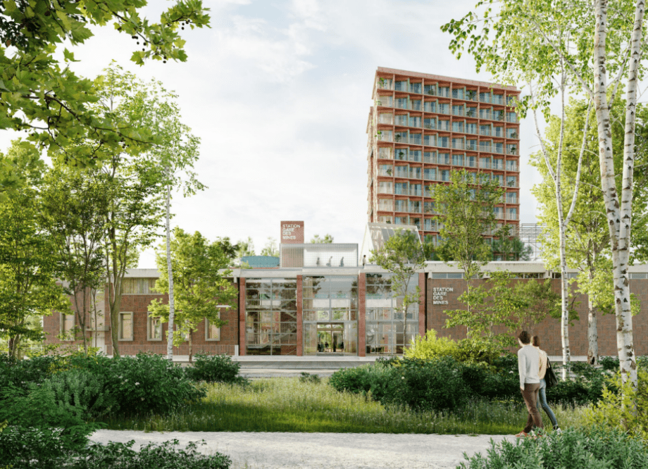 Réhabilitation des Station Nord et Sud de la Gare des Mines, construction d’une tour Crous de résidence étudiante et d’un hôtel d’activités.