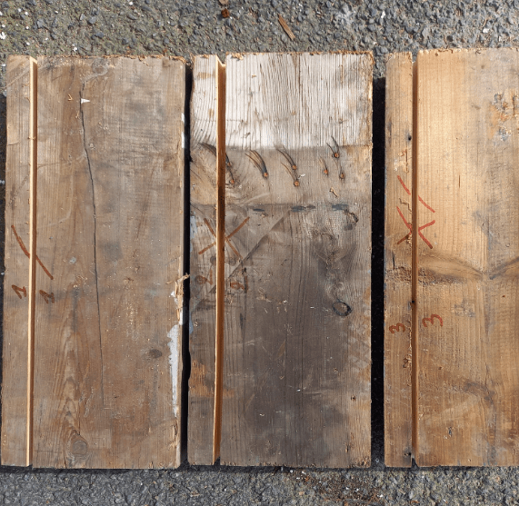 Dépose soigneuse et caractérisation d’éléments de charpente bois et acier, dépose soigneuse de bardage acier et mur en pierres