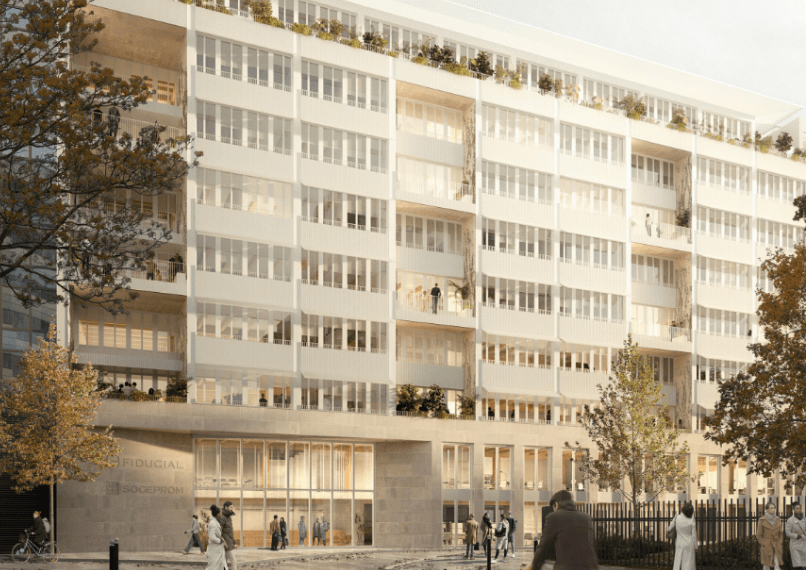 Démolition/reconstruction du bâtiment Synergies en R+9 (hormis ses infrastructures), réhabilitation de l’immeuble en R+5 et restructuration des abords des bâtiments afin d’accueillir un programme composé d’espaces de bureaux (11 000m²) et de logements (6000m²).